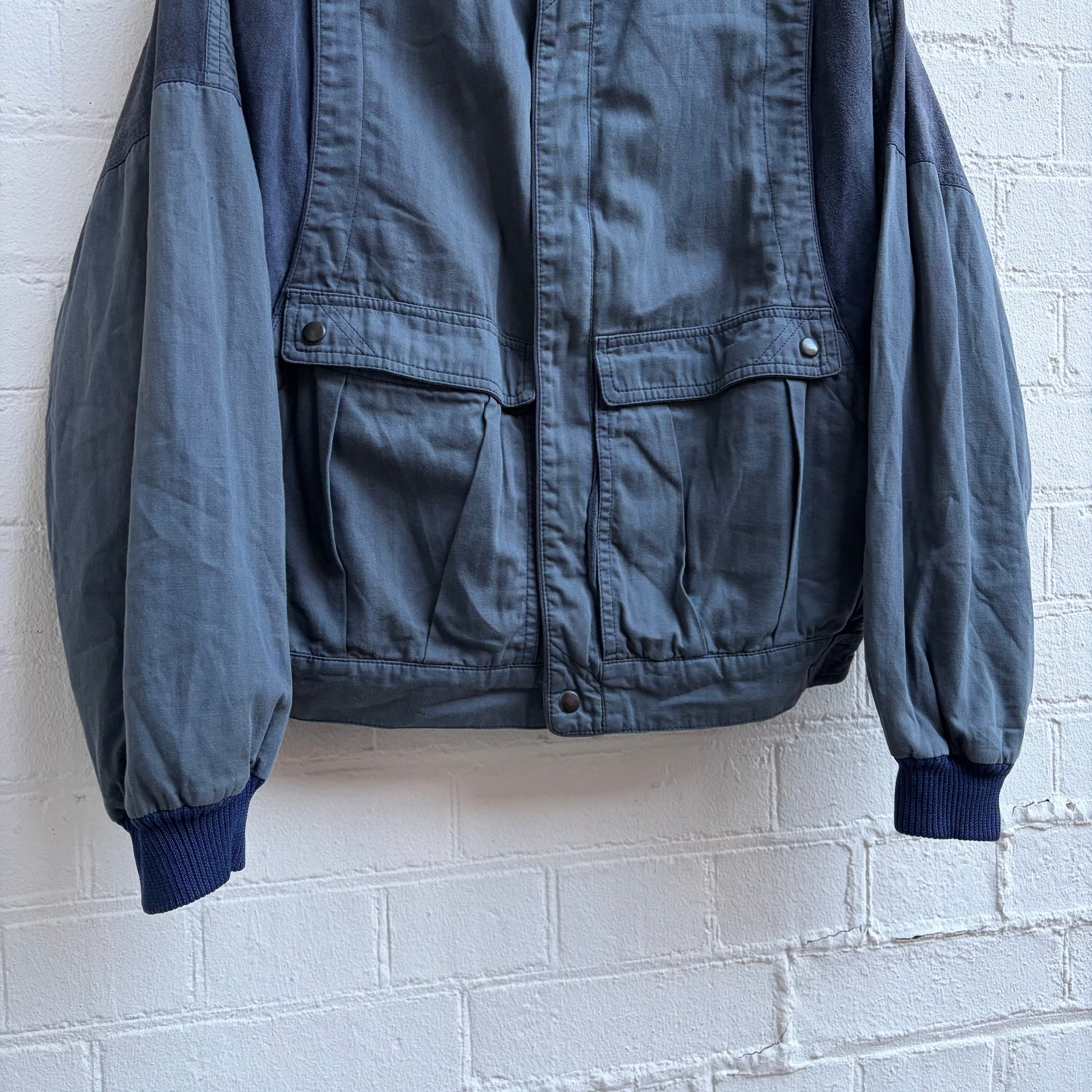 Beautiful jacket with amazing details. Suede panelling with great sun fading. Red inner lining, can be styled nicely worn inside out.