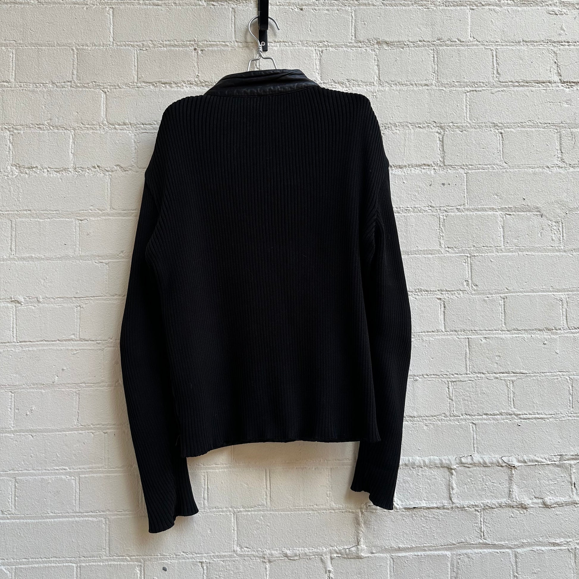 Gucci by Tom Ford Leather Collar Knitted Jacket